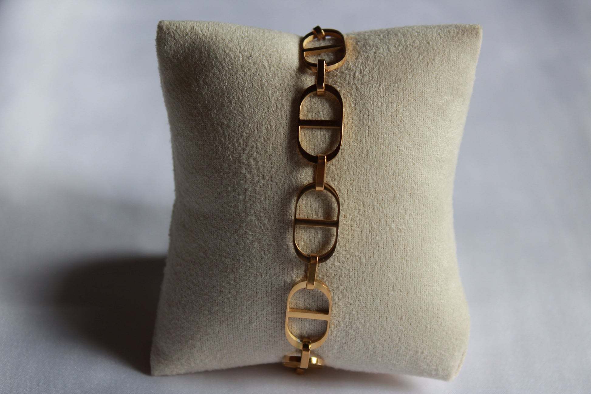 This stunning gold-plated stainless steel bracelet is the perfect accessory for everyday wear. Known for its durability and resistance to tarnishing, it maintains its shine and elegance even with daily use. The bracelet is designed as a bold statement piece that complements any outfit, adding a touch of luxury to your look. With a length of 15 cm and an additional 4 cm extension, it offers a comfortable, adjustable fit for any wrist.