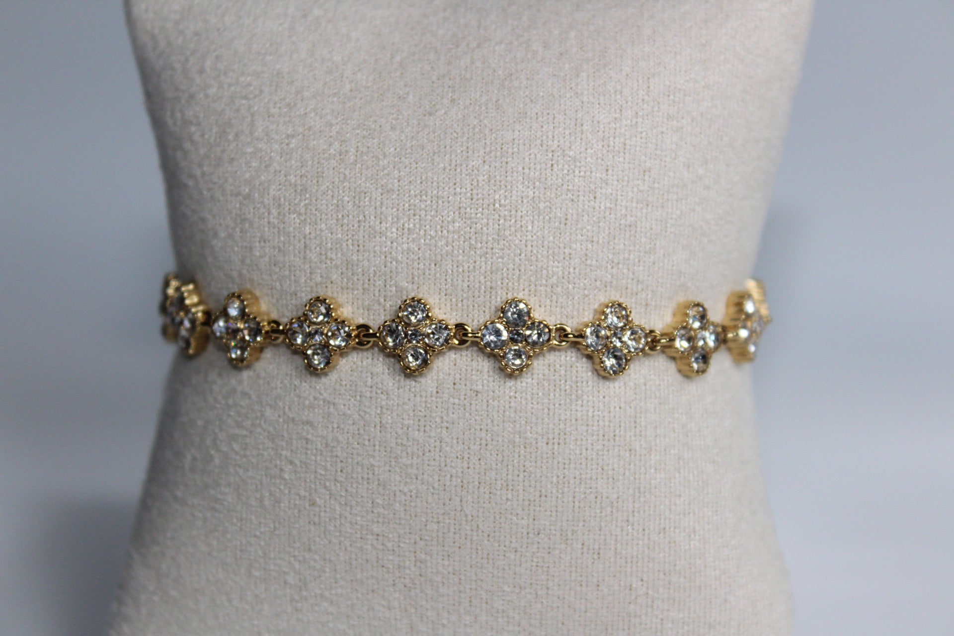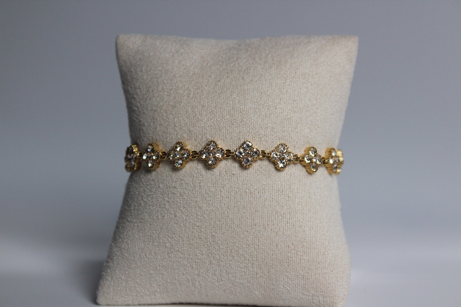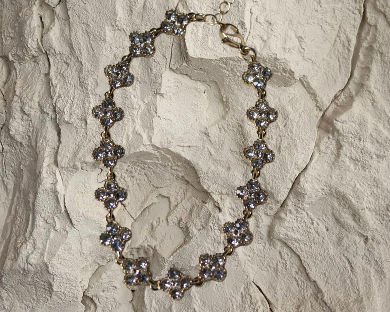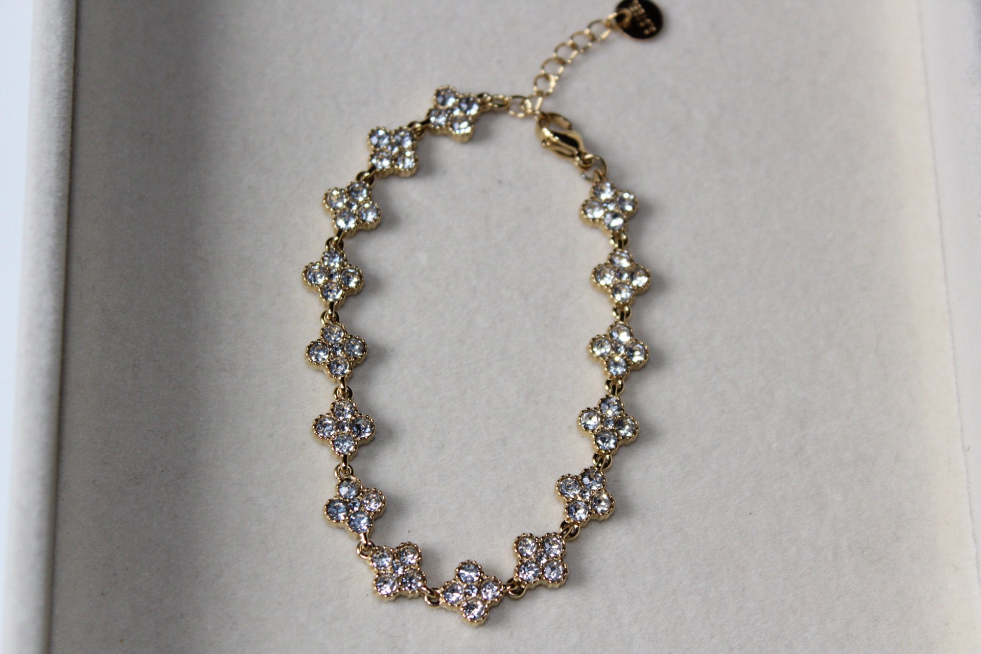 Shine brilliantly with the Lumé Bracelet, crafted from high quality gold plated stainless steel and adorned with sparkling diamonds in a delicate clover inspired design, reflecting the elegance its name suggests. This radiant bracelet is the perfect piece to upgrade your arm candy or to wear on its own as a statement of sophistication. Measuring 17 cm in length with a 5 cm extender, it offers the ideal fit for everyday wear or special occasions, making it a versatile and dazzling addition to your jewelry collection.