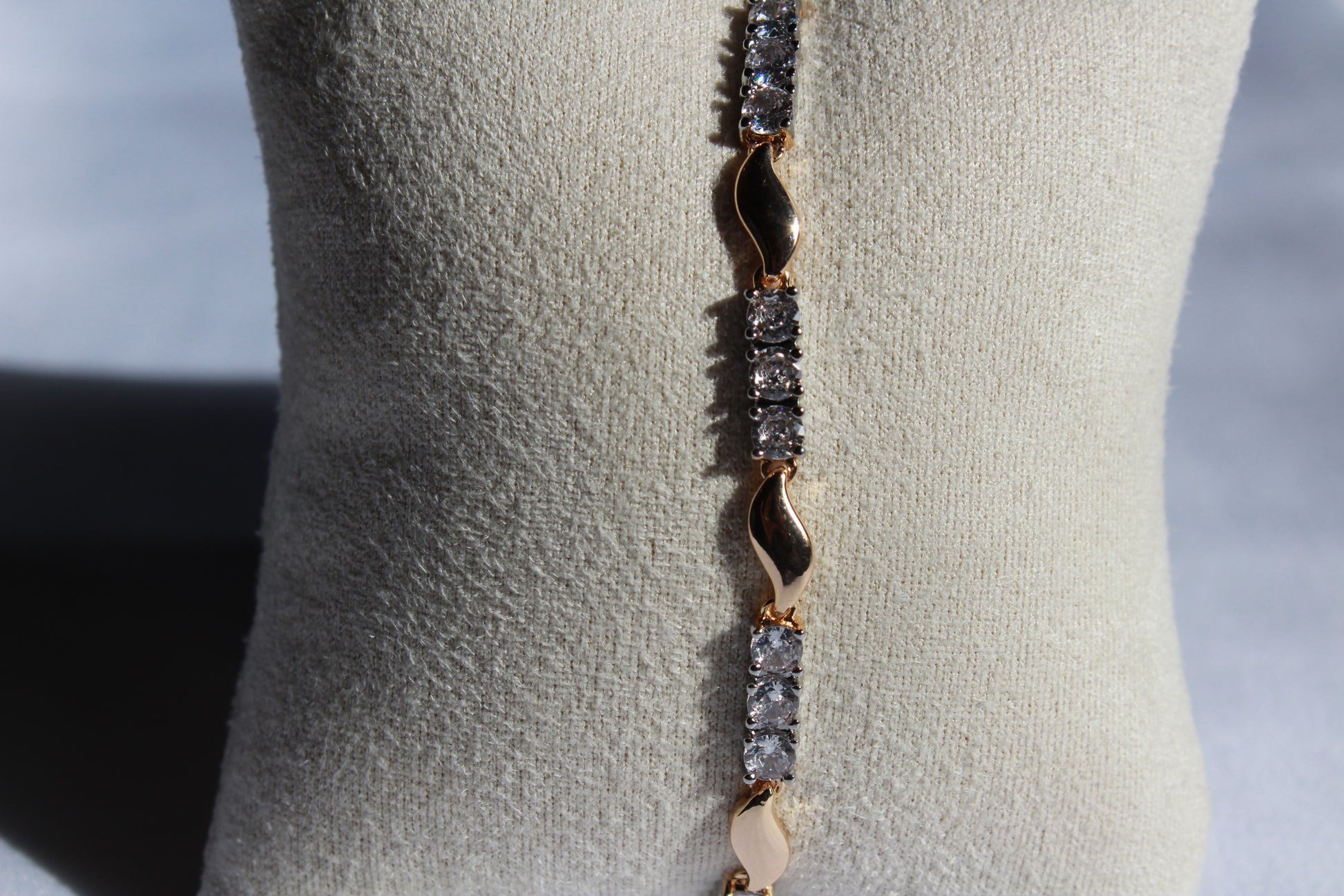 This stunning 925 sterling silver bracelet with 18k gold plating is adorned with sparkling AAA cubic zirconia stones, making it the perfect piece for those who love to mix gold and silver. The chic design, with its delicate stones, adds a touch of elegance, while the gold details make it versatile enough for everyday wear. Ideal for arm candy lovers, this bracelet is a must-have in your collection. With a length of 19 cm and an additional 2 cm extension, it offers a comfortable fit. Pair it effortlessly with our Aurum watch for a coordinated, sophisticated look.